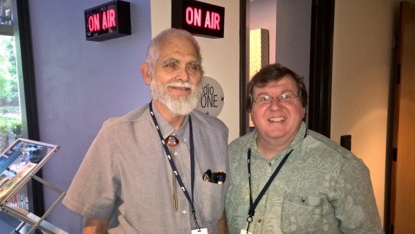 (Photo of Rolland Schearer and Andy Napier outside of TWR's Studio One)